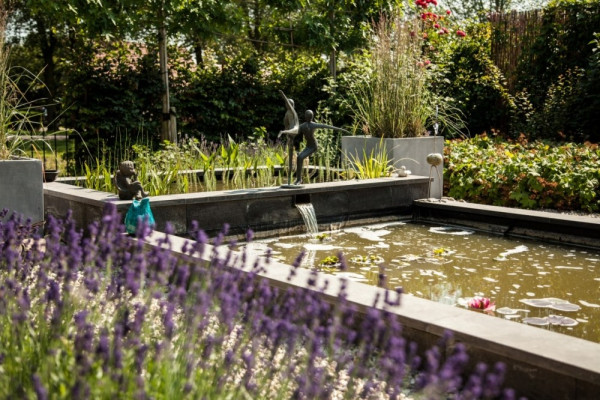 Of het nu een strak of een organisch gevormde vijver wordt, Gernell Hoveniers legt elke vijver op maat aan. De mogelijkheden qua vorm, diepte en formaat zijn daardoor legio. In een vijver zijn planten onmisbaar. Ze houden het water helder, voorkomen algengroei en bieden waterdiertjes een schuilplaats. Bij de aanleg van een vijver maakt ons hoveniersbedrijf daarom ook een vijverbeplantingsplan. Bij Tuincentrum Gernell kun je diverse soorten beplanting bekijken. Ook voor vijvervissen én advies over deze waterdieren kun je in het tuincentrum terecht. En wil je jouw vijver echt laten stralen, dan zorgt Gernell Hoveniers met de aanleg van vijververlichting voor de finishing touch.